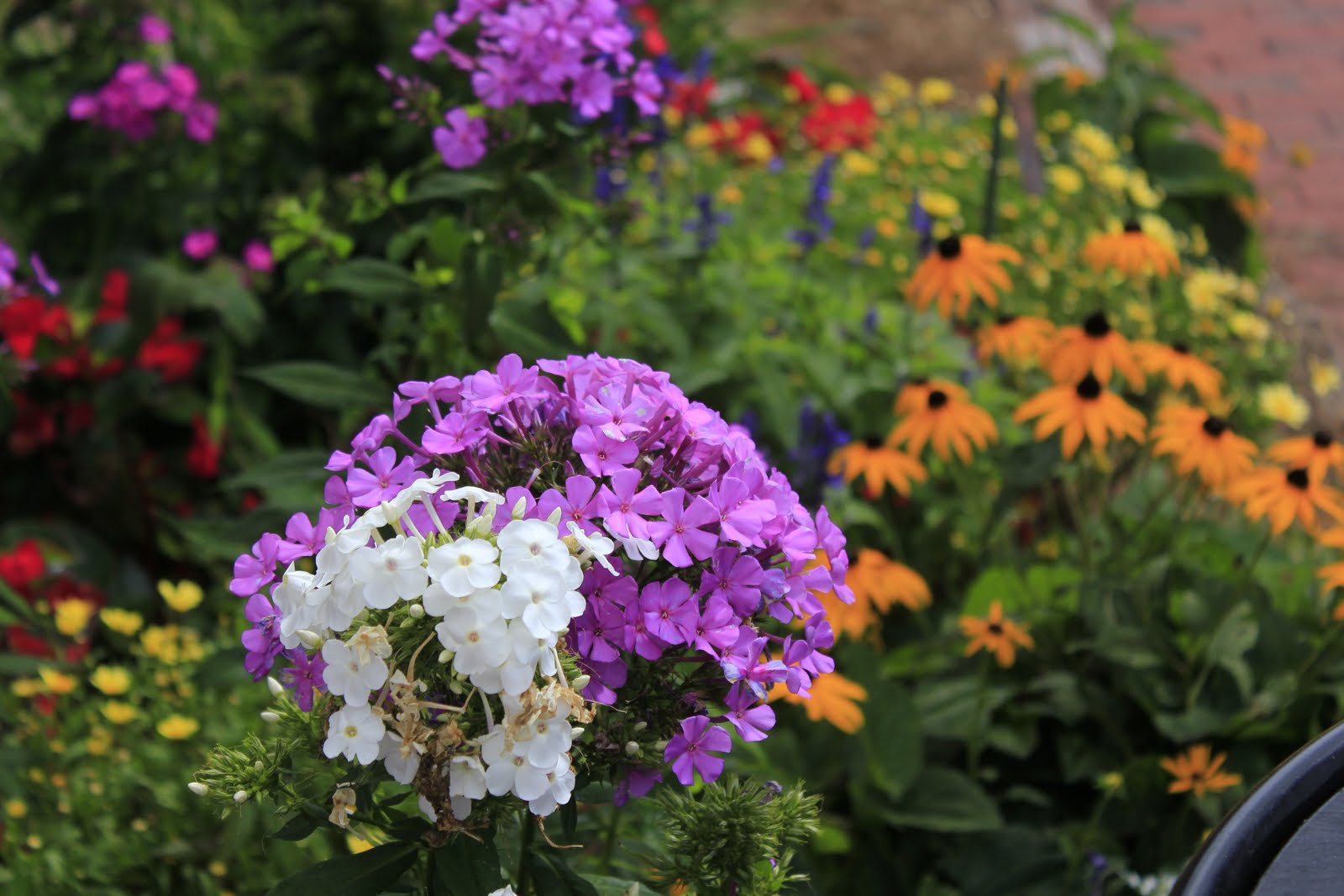 Hubby and I didn't have a lot of time to spend there that particular day, so we were only able to photograph three of the churches, mainly because they were in closer proximity to one another. I hope to photograph the Baptist church and the Catholic church next time around. We also took pictures of some of the shops and the gorgeous flowers, like these pink Phlox.