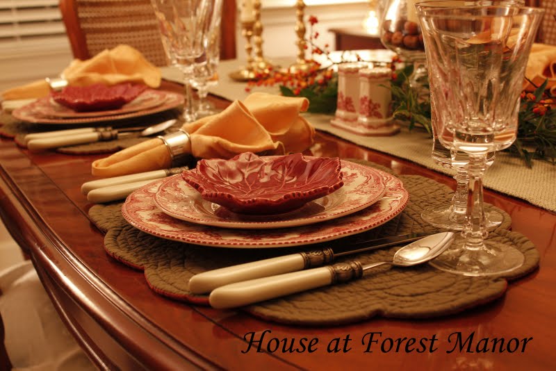 Well, I definitely didn't set any records for the most tablescapes in 2011 -- far from it. But I had fun learning and practicing. I am grateful for Mr. Forest Manor's patience in photographing all the tables for me. I think he's kinda' proud of my blog; he's certainly made a significant contribution. I enjoy coming up with the ideas and doing the set-up, and I leave the photography to the expert. I did take a photography class this past year, though, and I also took some photos for some of my outdoor posts. I hope to get better at the indoor pics this year.