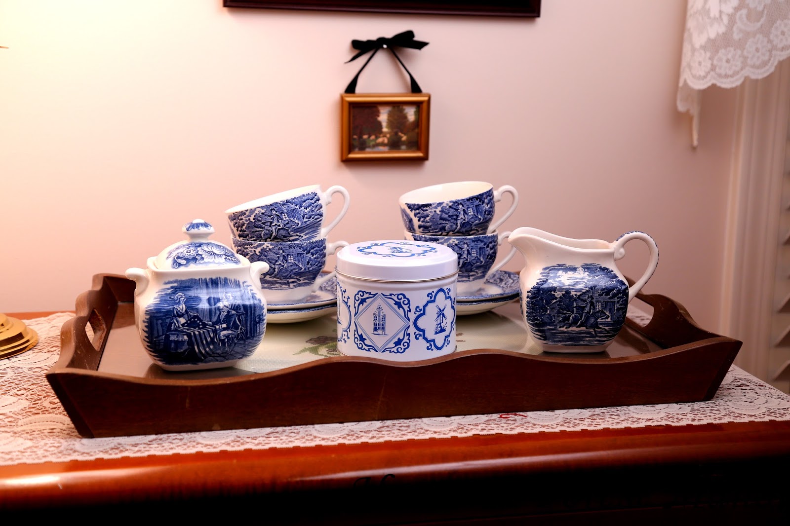 The cups and saucers, creamer, and sugar bowl are part of my "Liberty Blue" dishes.